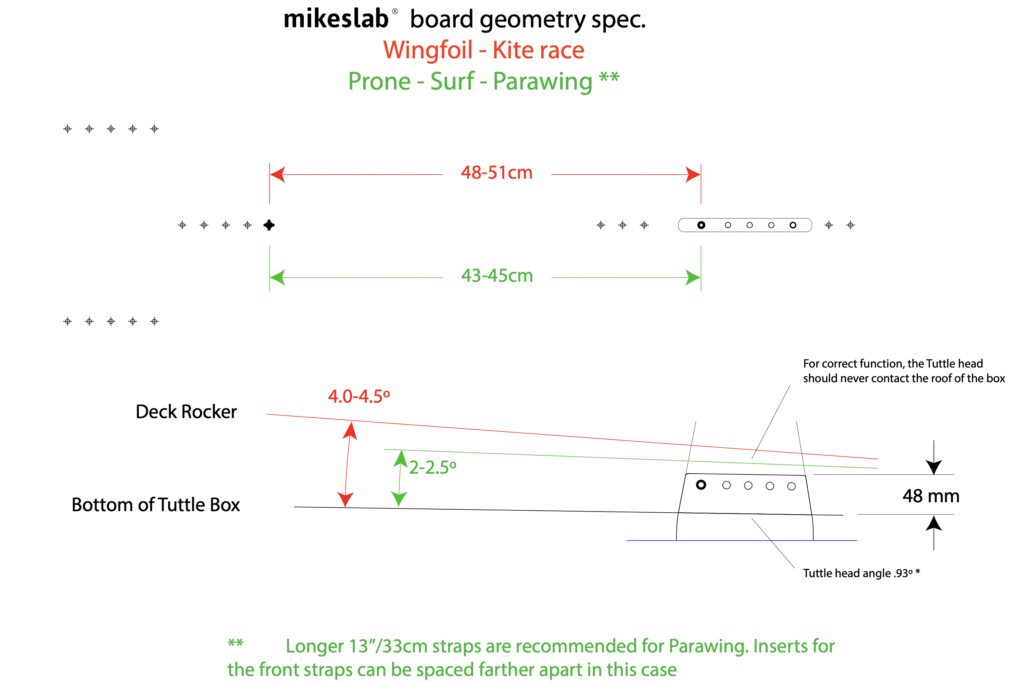 Mikeslabs hydrofoils will perform their best with the following board specification: